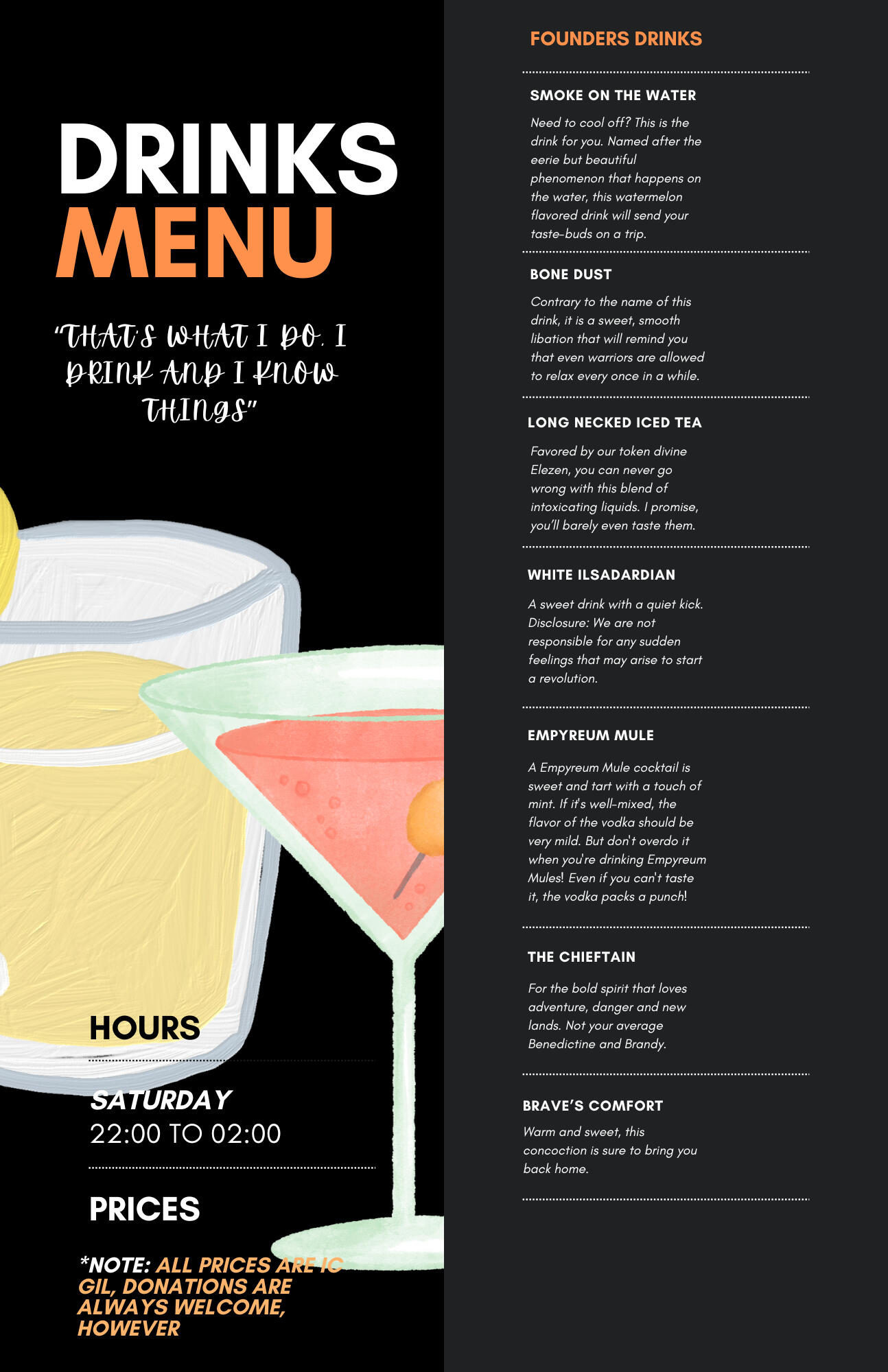 7. This venue is intended for entertainment and RP purposes. This does NOT include anything that is considered beyond PG13. If you are romantically involved with someone, by all means! Flirt away! But please respect the fact this is still a public venue and will not tolerate anything that can be misconstrued as 'sexual activity'. There are plenty other venues throughout Eorzea that can accommodate this type of RPing. Failure to respect this rule will result in a warning to keep it to /tells. Further failure will have you removed and banned.